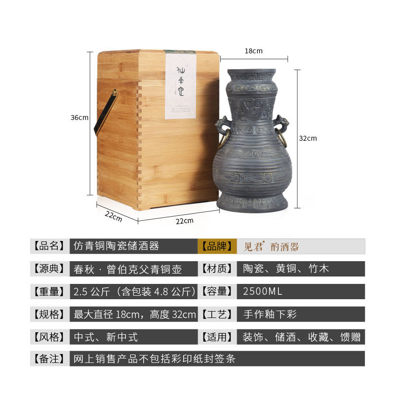 See Junjingdezhen ceramic wine jar household 5kg sealed white wine jar imitation bronze household wine cabinet wine bottle