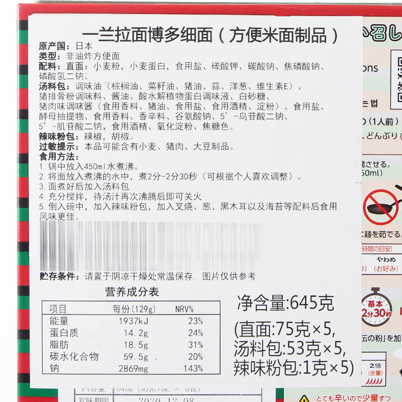 Japanese ICHIRAN Yilan Lan Yilan Japanese Pagang Bone Soup Ramen 645G * 1 box straight face (5 people)