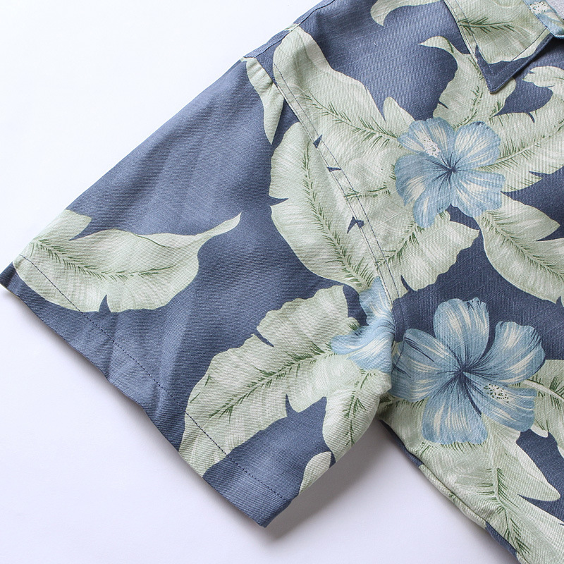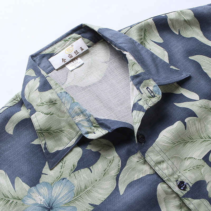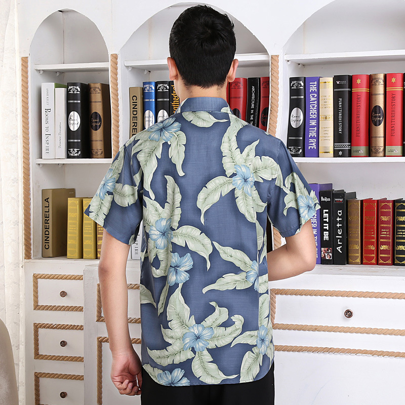2020 summer men's silk short-sleeved shirt Middle-aged shirt Male Dad's shirt Male leaves big flowers