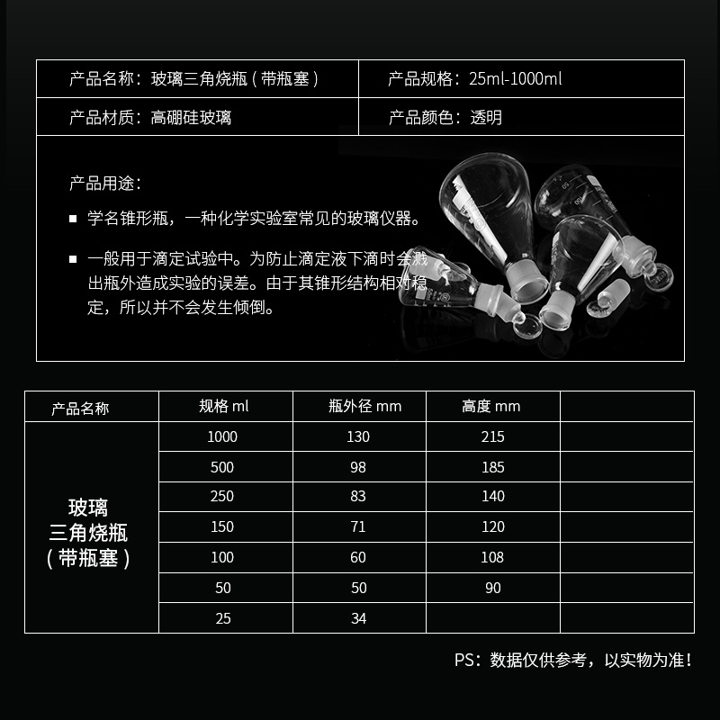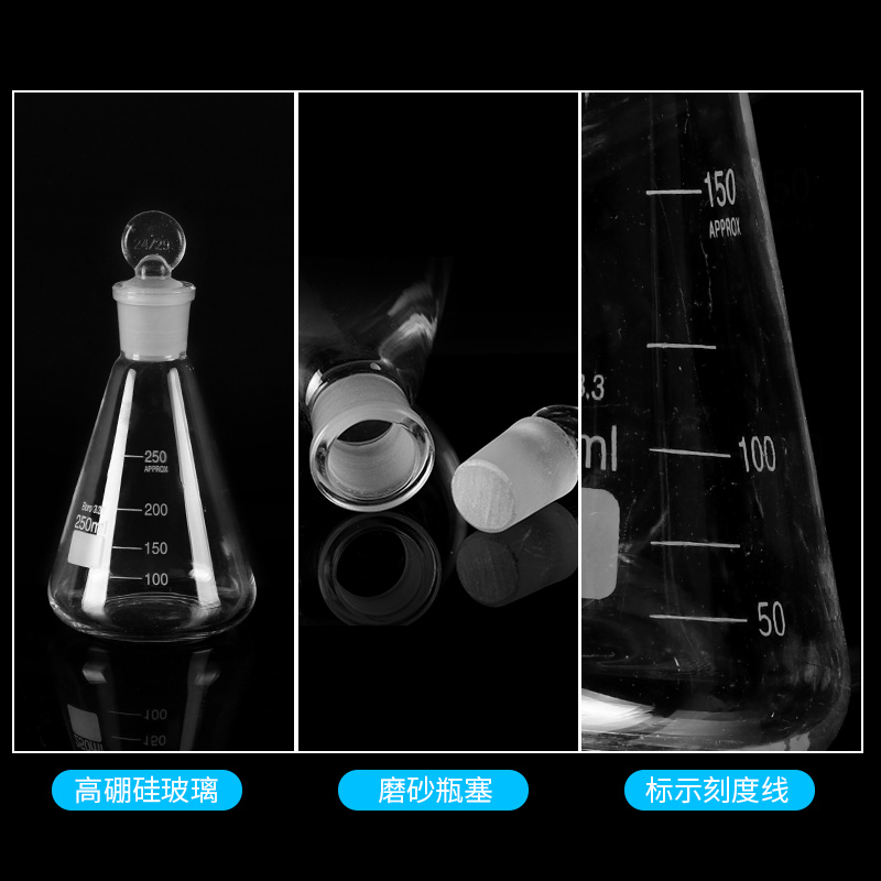 25ml conical flask (with frosted stopper) 50ml conical flask (with frosted stopper) 100ml conical flask (with frosted stopper) 150ml conical flask (with frosted stopper)