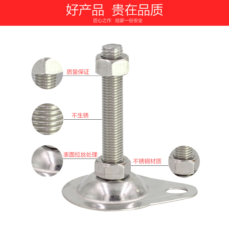Stainless steel adjustable foot cup 304 flat bottom with hole m12 fixed foot screw machine pad foot pad adjustment foot