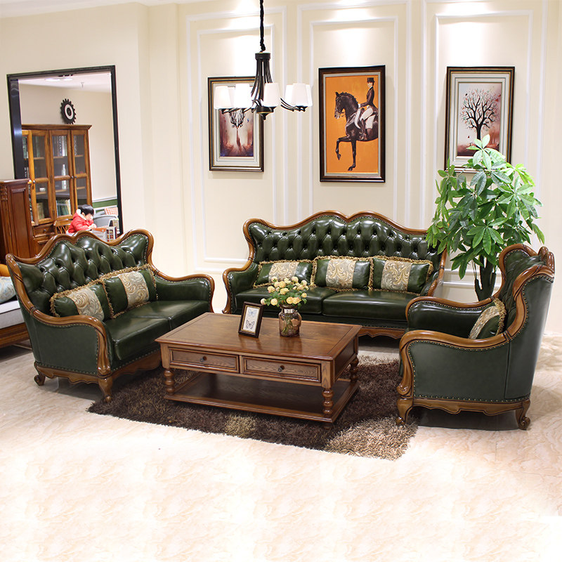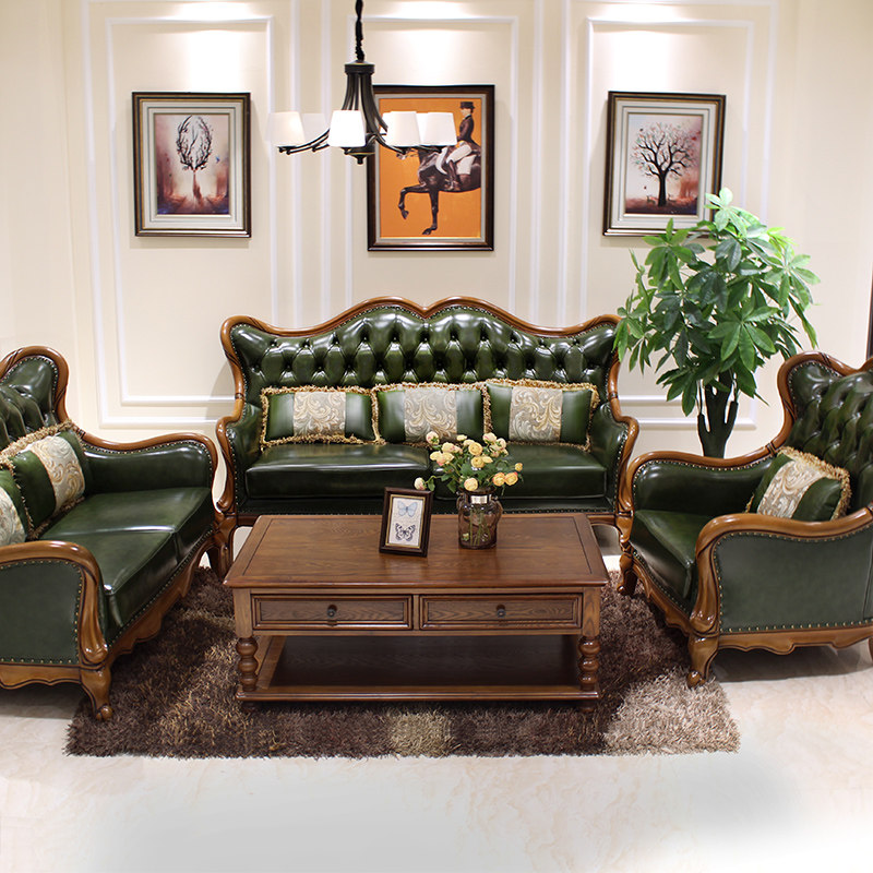 American-style solid wood leather sofa 123 combination European-style living room fully furnished villa sofa large-scale leather furniture