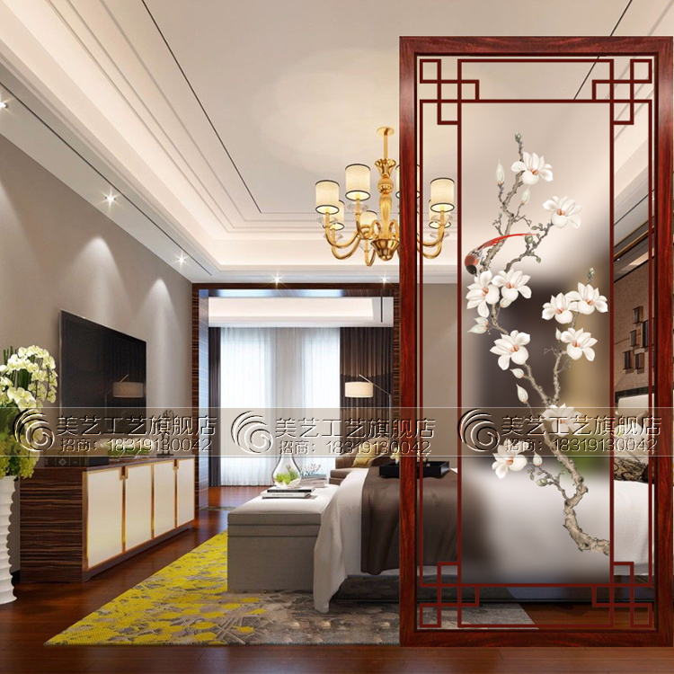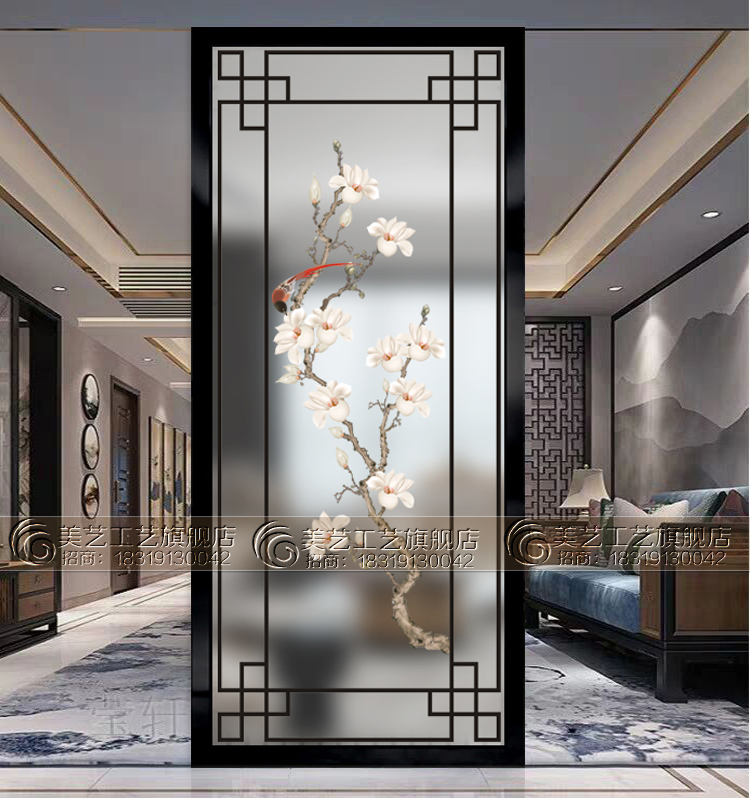 New Chinese 3D art glass living room screen partition double - sided scrub transmitted fashion entry - door porch closing aisle