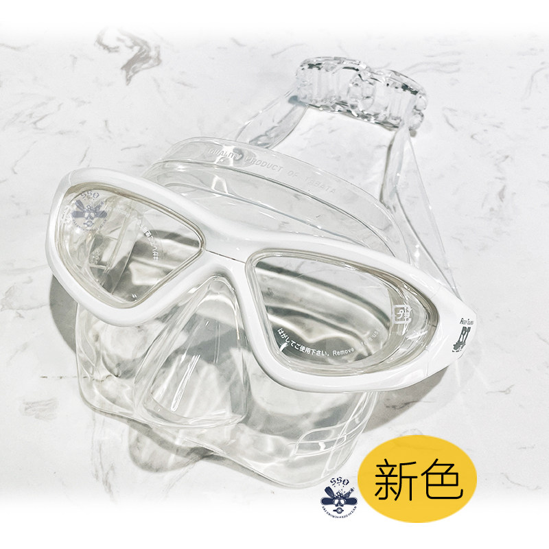 Vinyl white frame Vinyl black frame Transparent blue frame Transparent white black face mirror Black snorkel Transparent white face mirror White snorkel Vinyl white Black snorkel