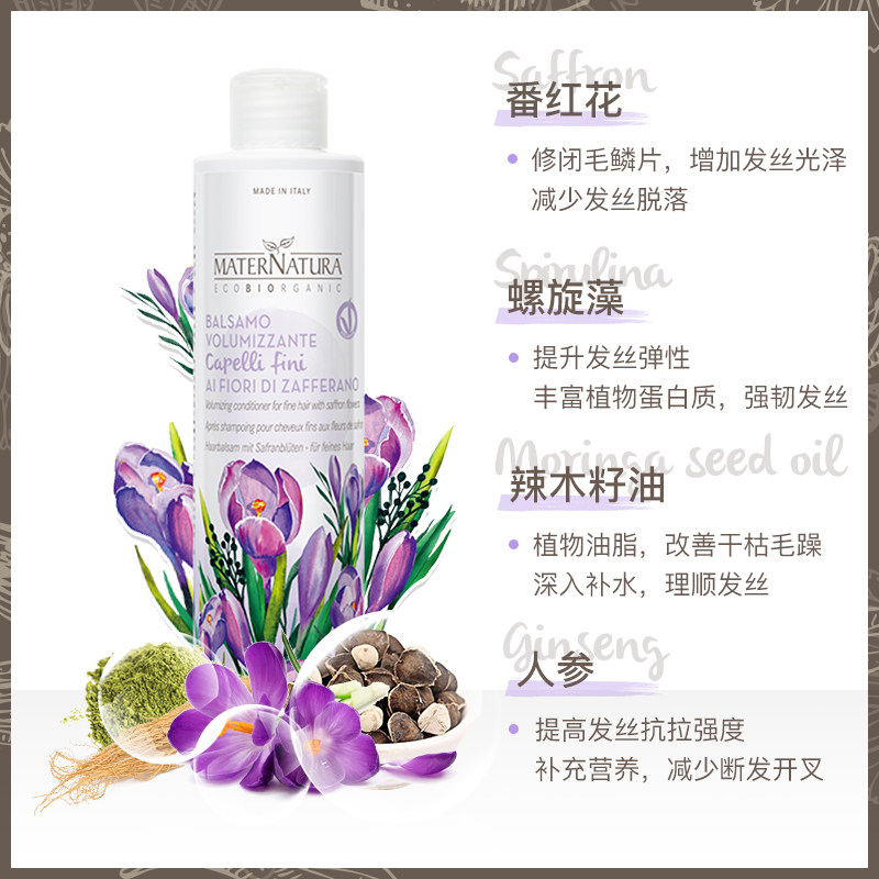 Saffron Volumizing Conditioner Silicone-free Italian imported MN conditioner for long-lasting fluffy, strong, fine and soft hair
