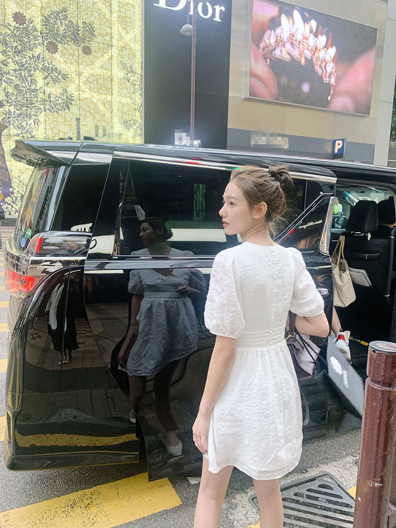 Fish rabbit rabbit white V-neck short-sleeved dress female 2023 spring new temperament bowknot a-line skirt