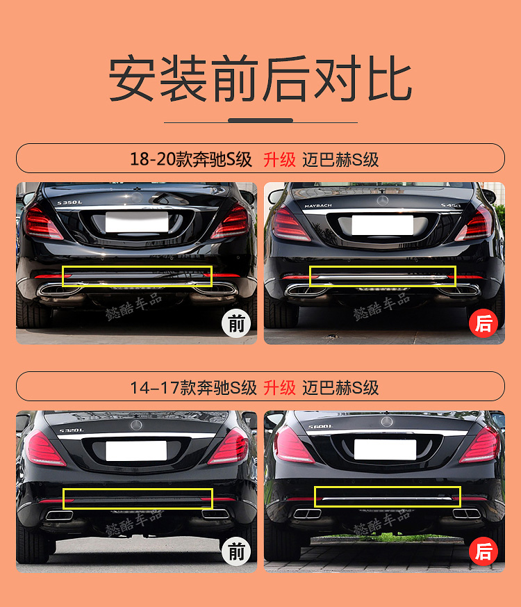 Suitable for Mercedes-Benz S-class modified rear bar decoration S350 bright strip S450 Maybach chrome-plated S400 S320L S300