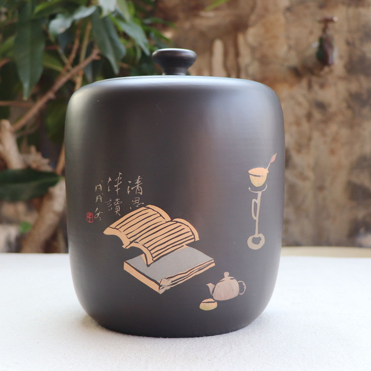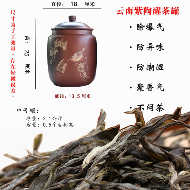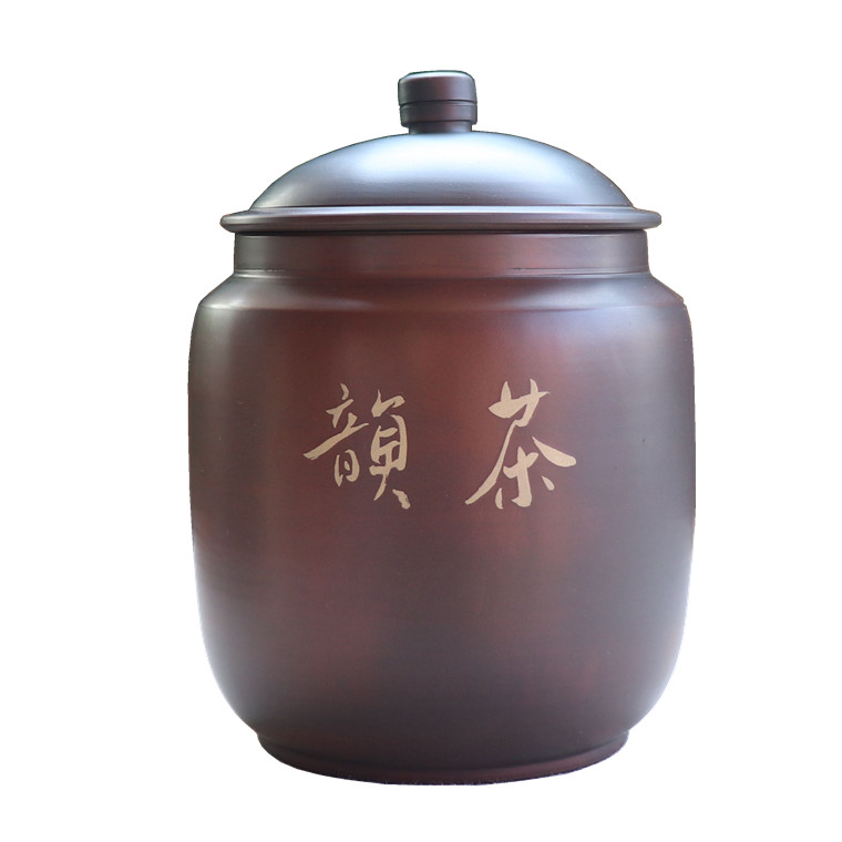 Jianshui purple pottery home with Pu'er raw and cooked ancient tree tea storage wake sealed ceramic jar stainless handmade black pottery tea pot