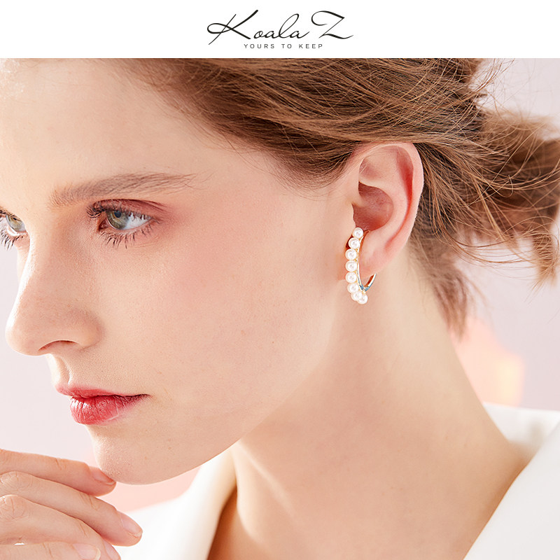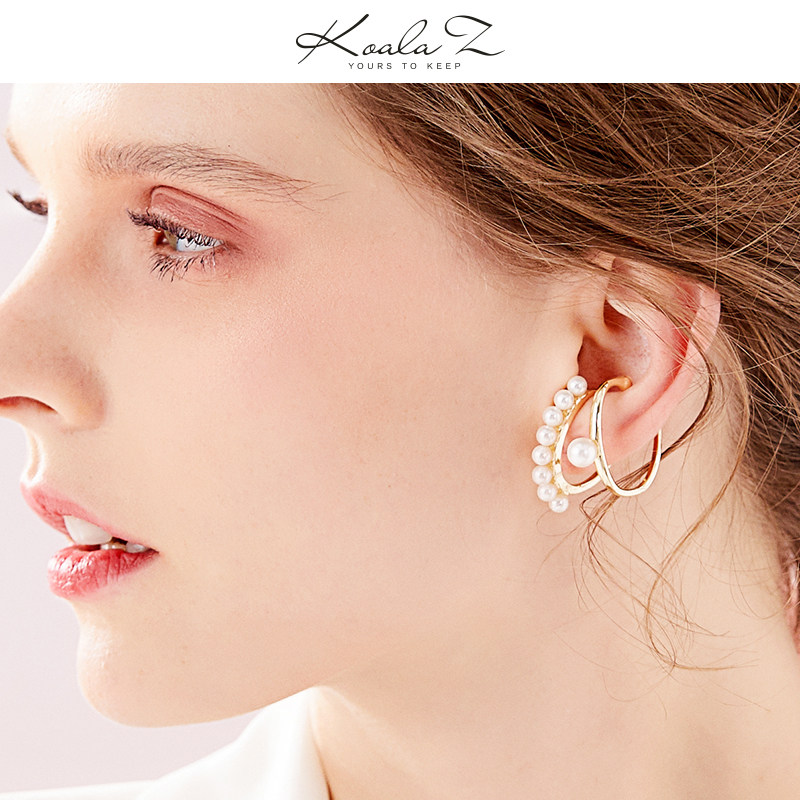 Personality Asymmetrical Niche Design Pearl Ear Hanging Women Everyday Wear 100 hitch
