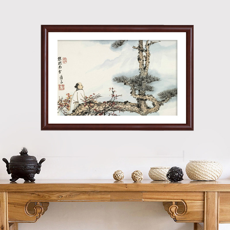 Chinese word picture frame mounting frame hanging wall Dingding as solid wood frame 4k8KA4 Xuan paper landscape painting 30 inch custom