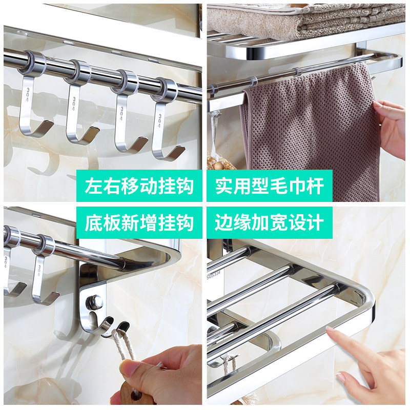 Towel rack free punch stainless steel storage bath towel rack hook rod powder room bathroom toilet rack wall rack