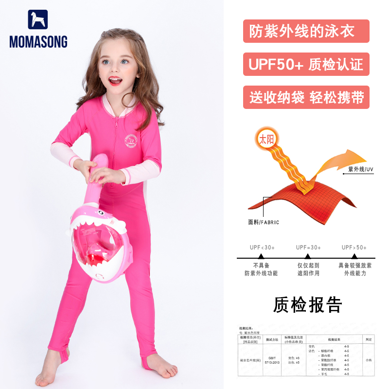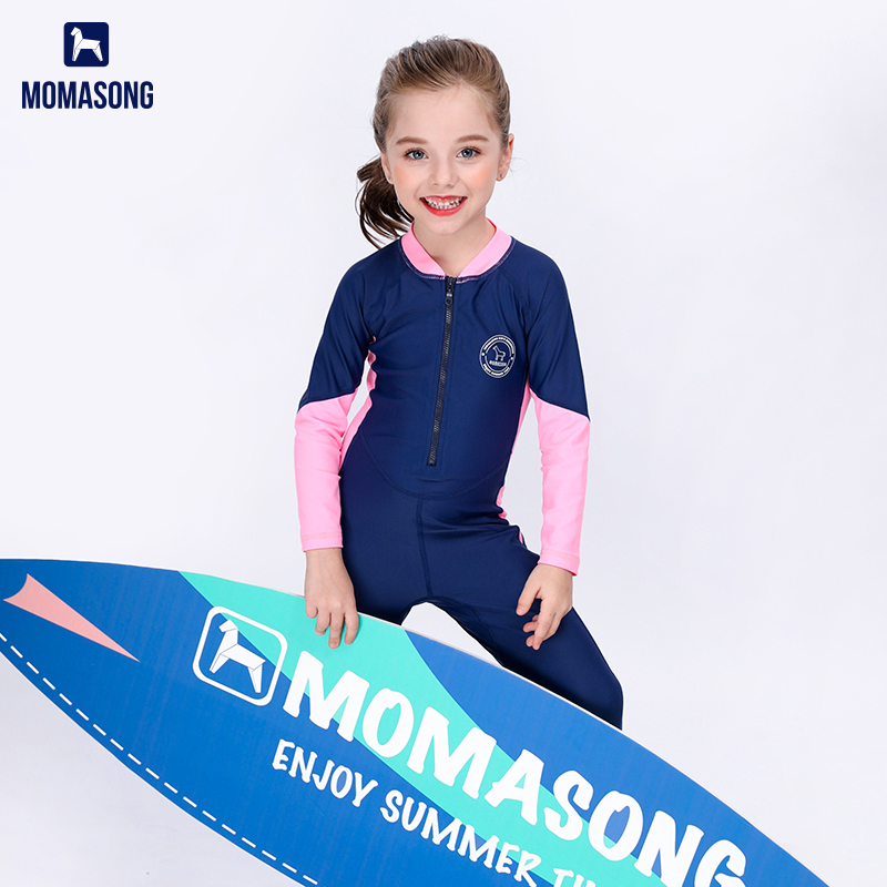 Children's swimsuit female one-piece long-sleeved trousers medium and large children's hot spring swimsuit girl student sun protection quick-drying wetsuit
