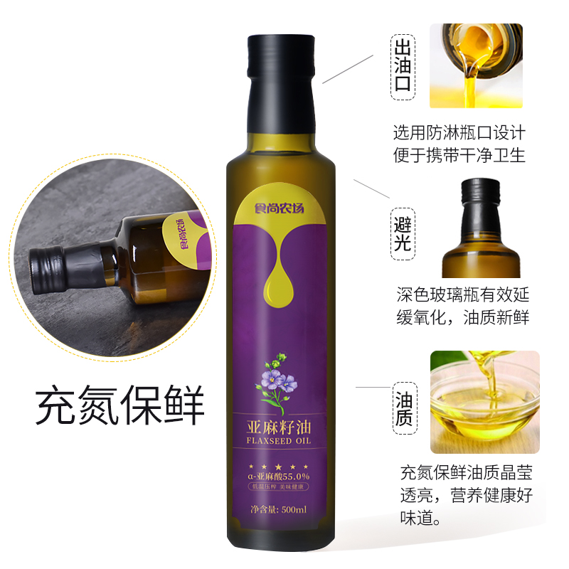 Flax seed oil edible oil cold pressed first grade 500mlx2 bottled baby baby moon Sesame Seed Food Farm