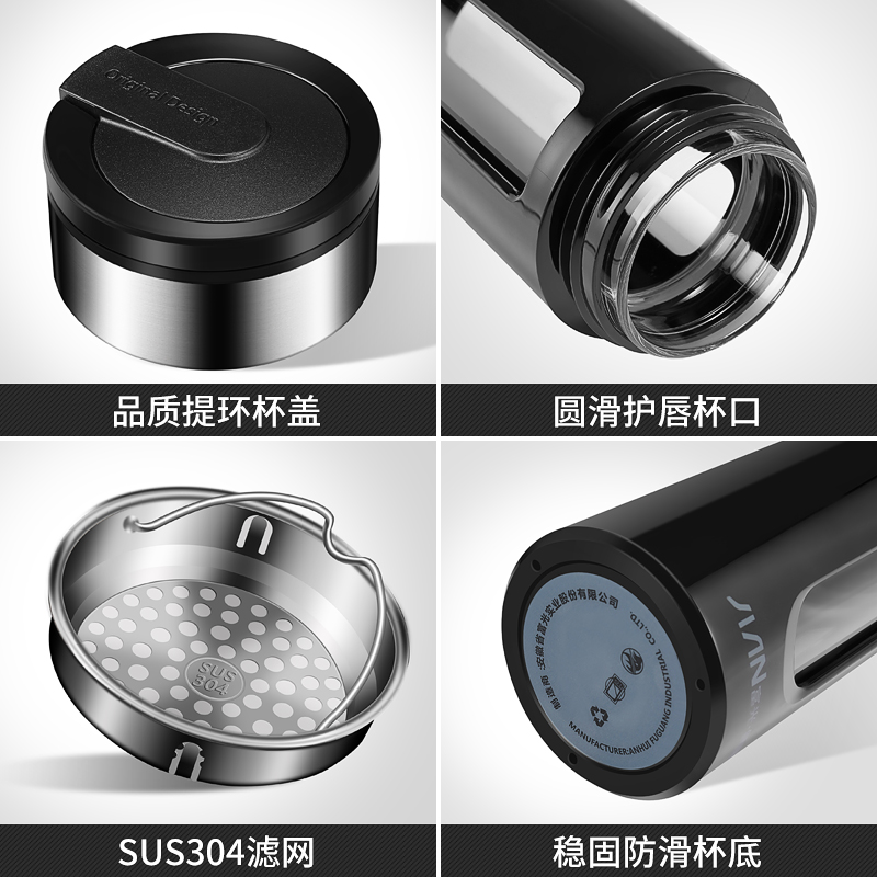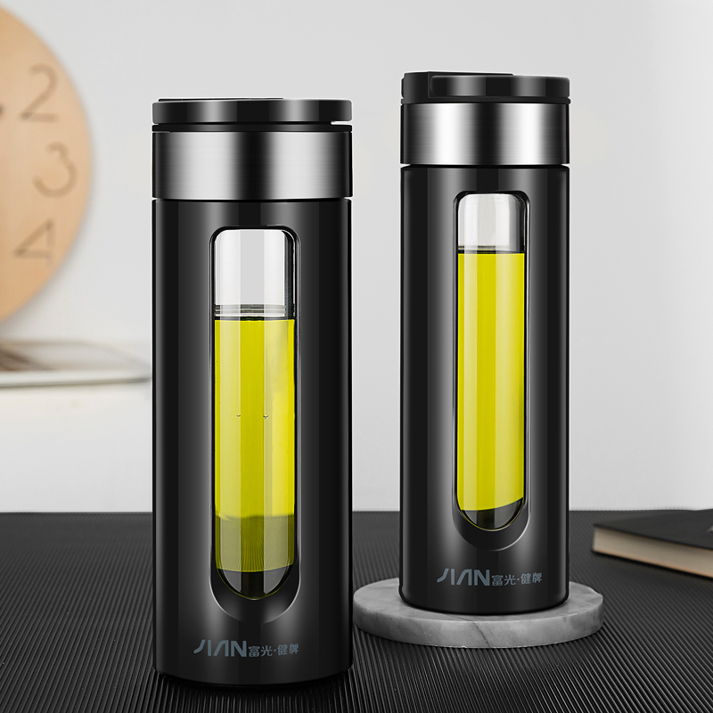 Rich Light Double Glazed Cup Men Upscale Anti-Fall Bubble Tea Cup Insulation Filtration Drinking Water Glass Children Portable With Lid Heat Resistant