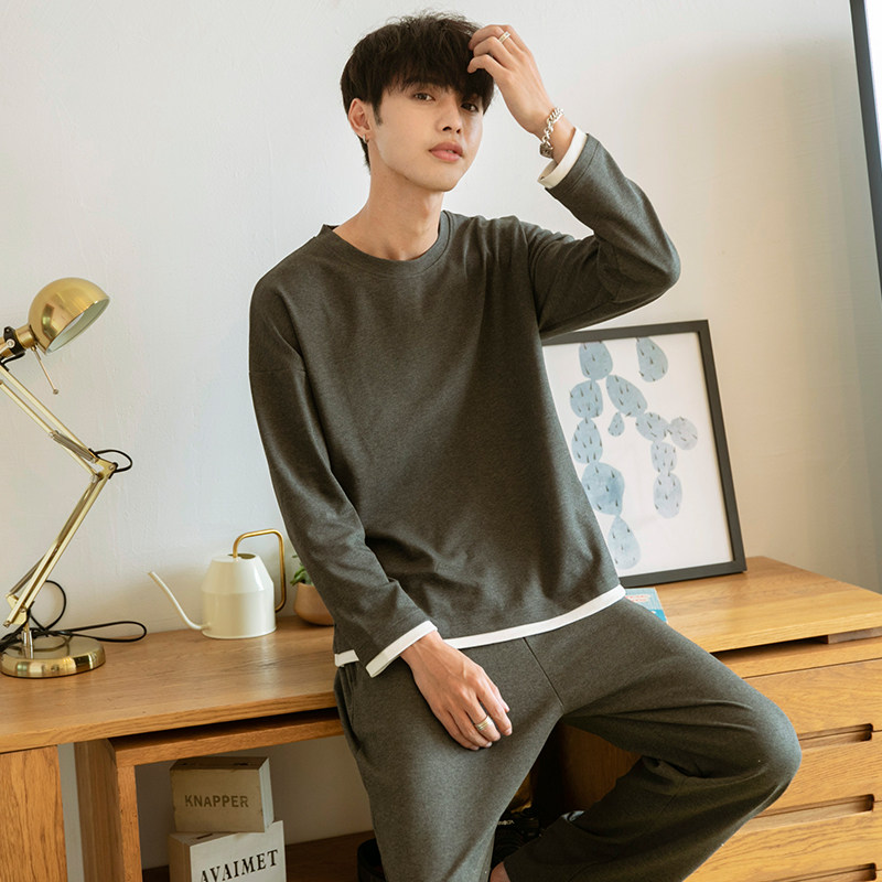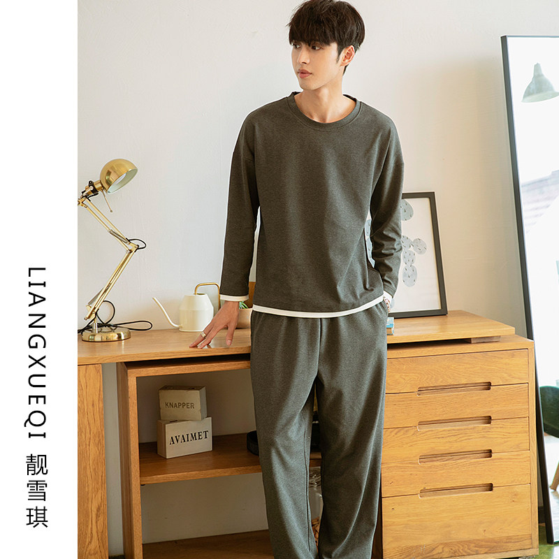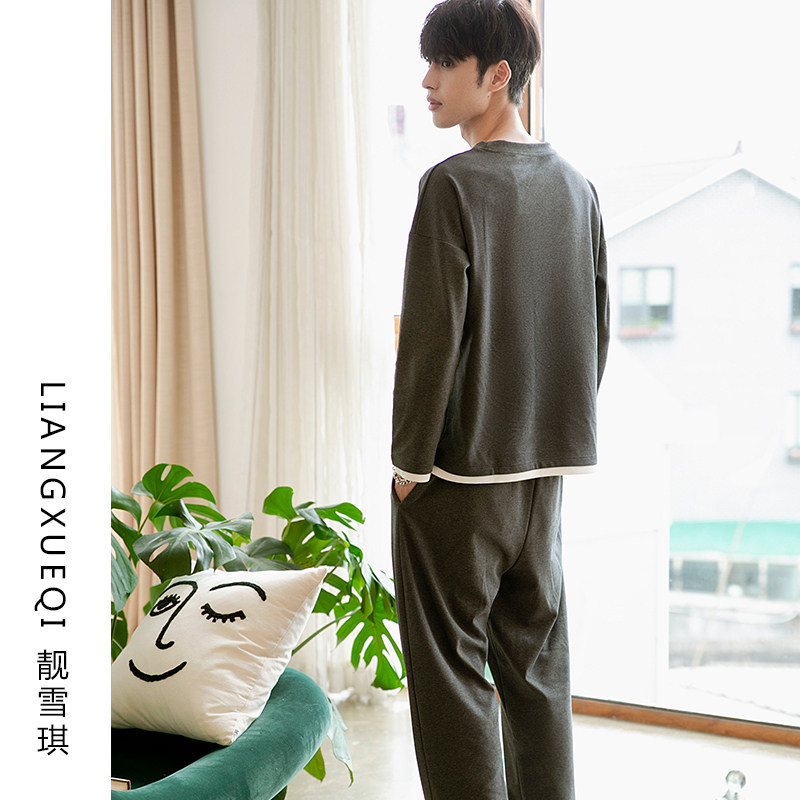 Liang Xueqi men's cotton pajamas Spring and Autumn long sleeve Korean version of boys round neck loose pullover cotton home suit