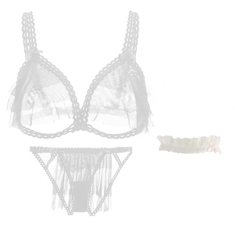 (S T) You and the cat I want the European and American Three-point style bra sexy perspective Temptation Eroy lingerie Three sets