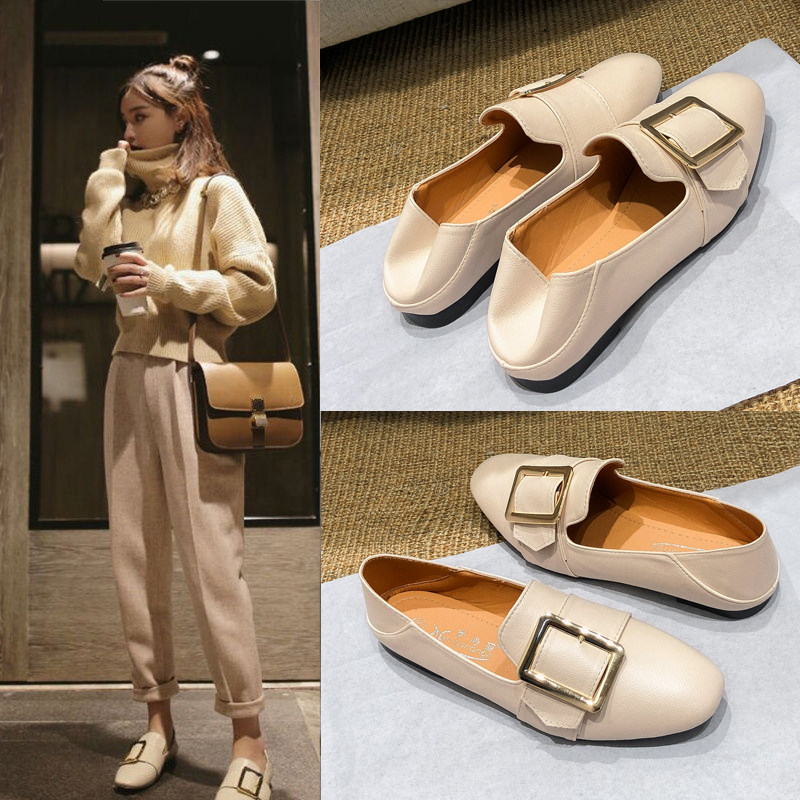 Single shoes in 2023 new Han edition of small leather shoes spring female shoes spring and autumn soy bean shoes