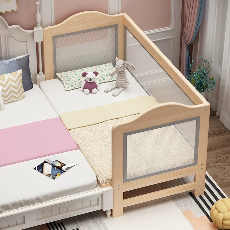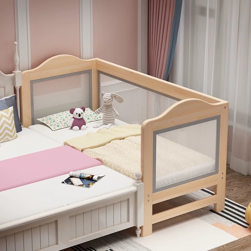 Solid wood children's splicing bed with height mesh cloth guardrail boys girls baby edge bed large bed enlarged and widened custom made