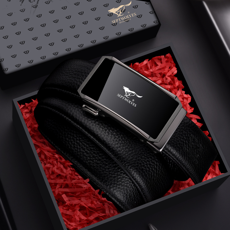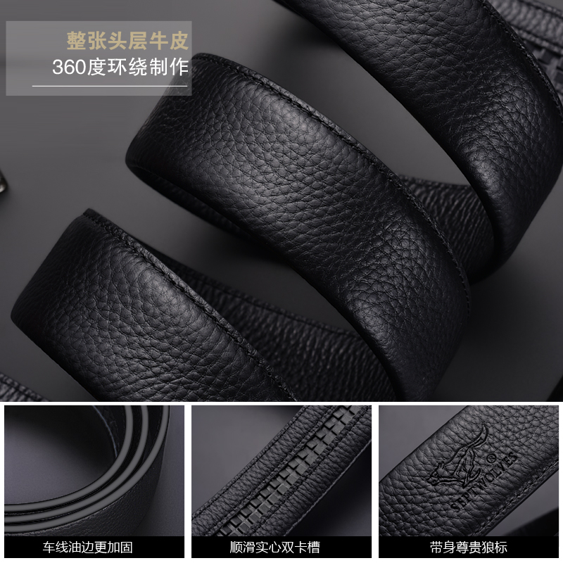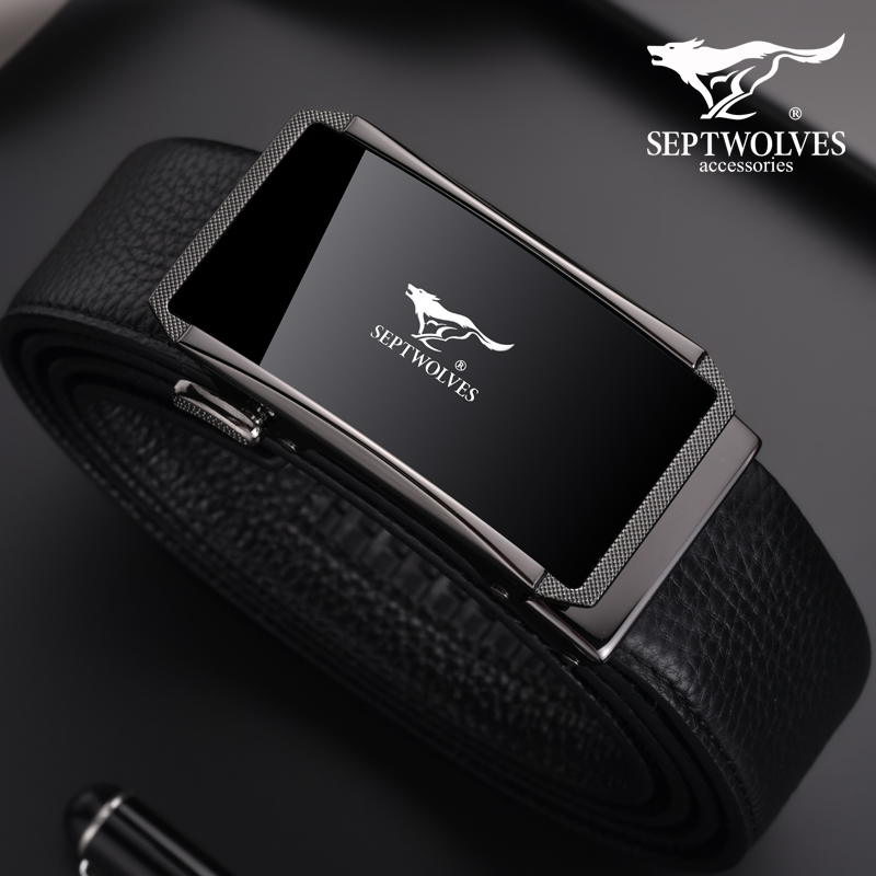 Seven Wolves Men Leather Strap Genuine Leather Automatic Buckle Girdle Male Mid Youth Head Layer Pure Bull Leather Men's Pants With Tide