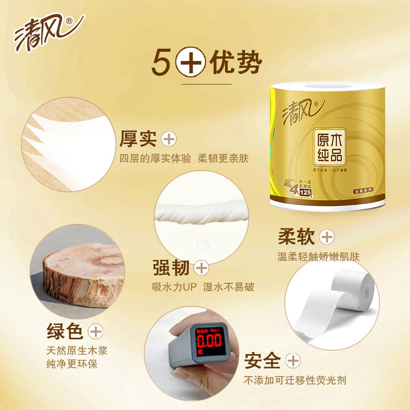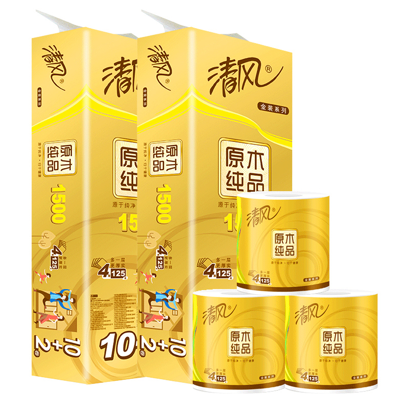 Qingfeng 8 rolls with core roll toilet paper roll paper whole box gold sanitary paper towel toilet paper household affordable 125g