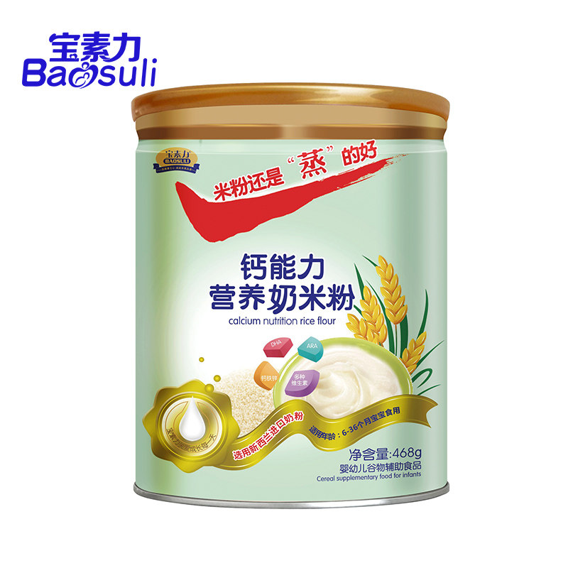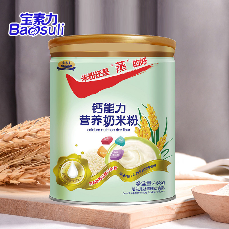 Baosuli calcium capacity nutritional milk rice flour baby high iron rice flour baby rice glutinous rice 6-36 suitable for 468g 1 can