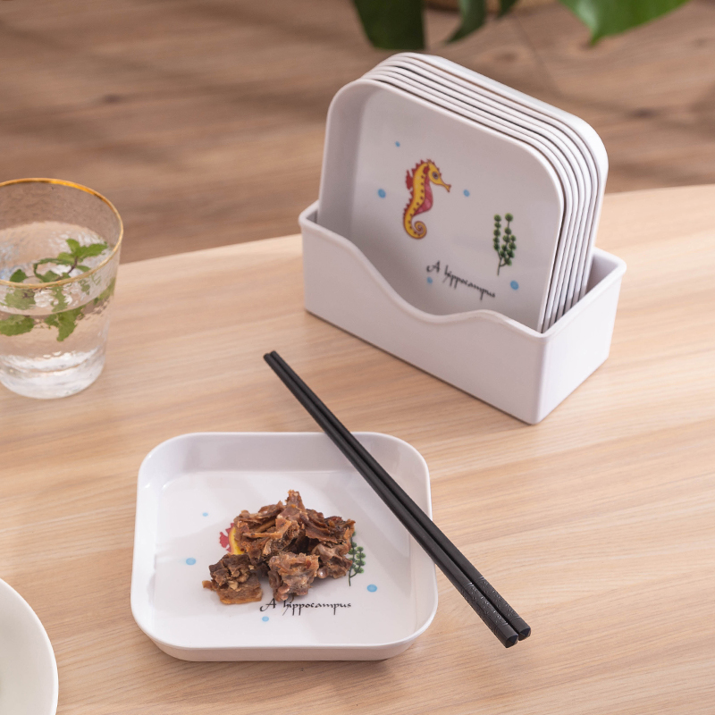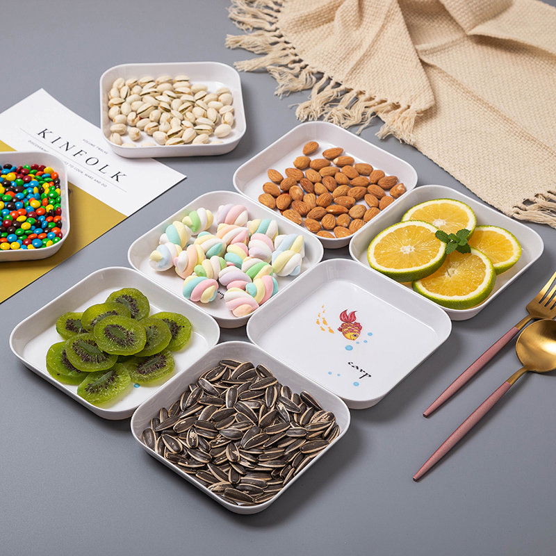Imitation porcelain dried fruit plate spitting bone plate household bone plate table garbage sorting plate fruit square snacks snack plate