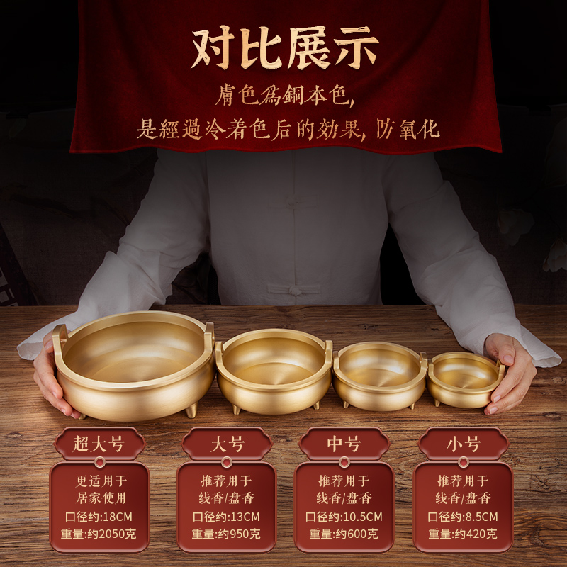 Incense burner pure copper extra large for Buddha to offer sandalwood incense burner incense home incense stick insert Xuande furnace sacrifice incense