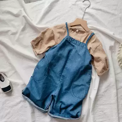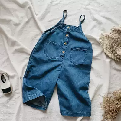 2021 spring quality bar ~ Korean children's nostalgic wind is wearing washed denim baby bag pants wide leg casual pants