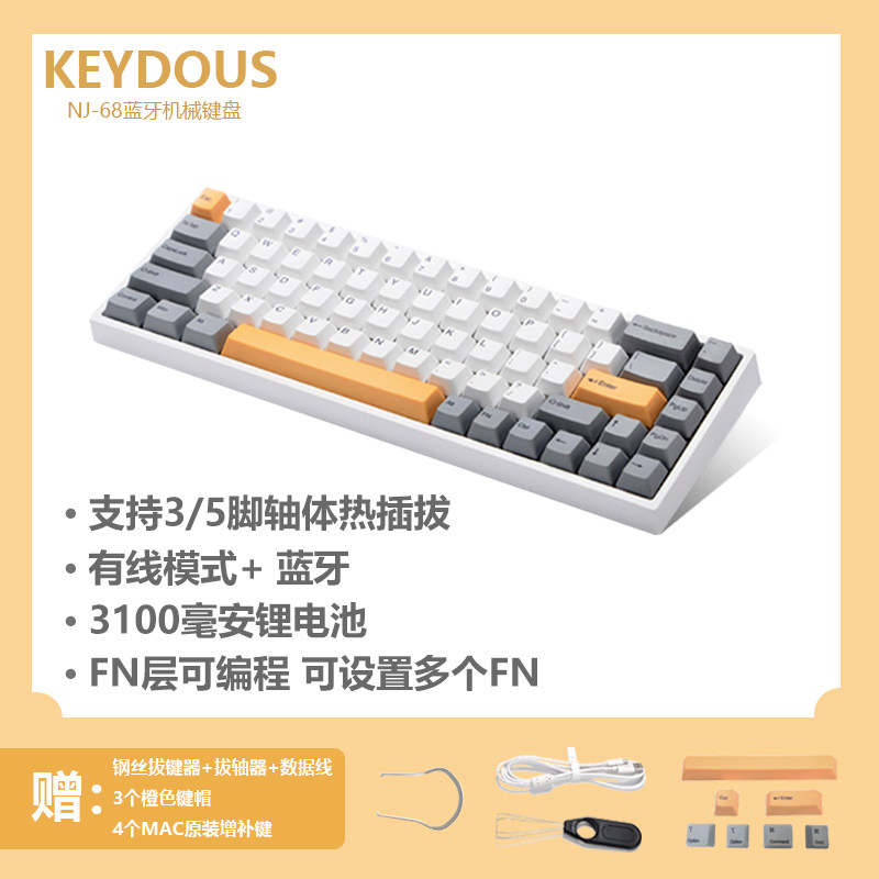 Keydous NJ68 Hot Plug Bluetooth Dual Mode 68 Keyboard MAC Portable ipad Programmable Mechanical Keyboard
