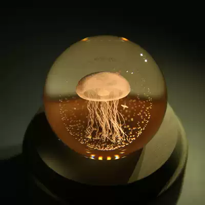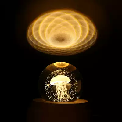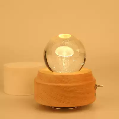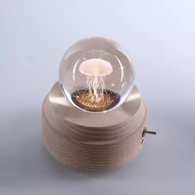 Birthday gift Tanabata Valentine's Day jellyfish glowing crystal ball rotating music box wooden to give boy girlfriend
