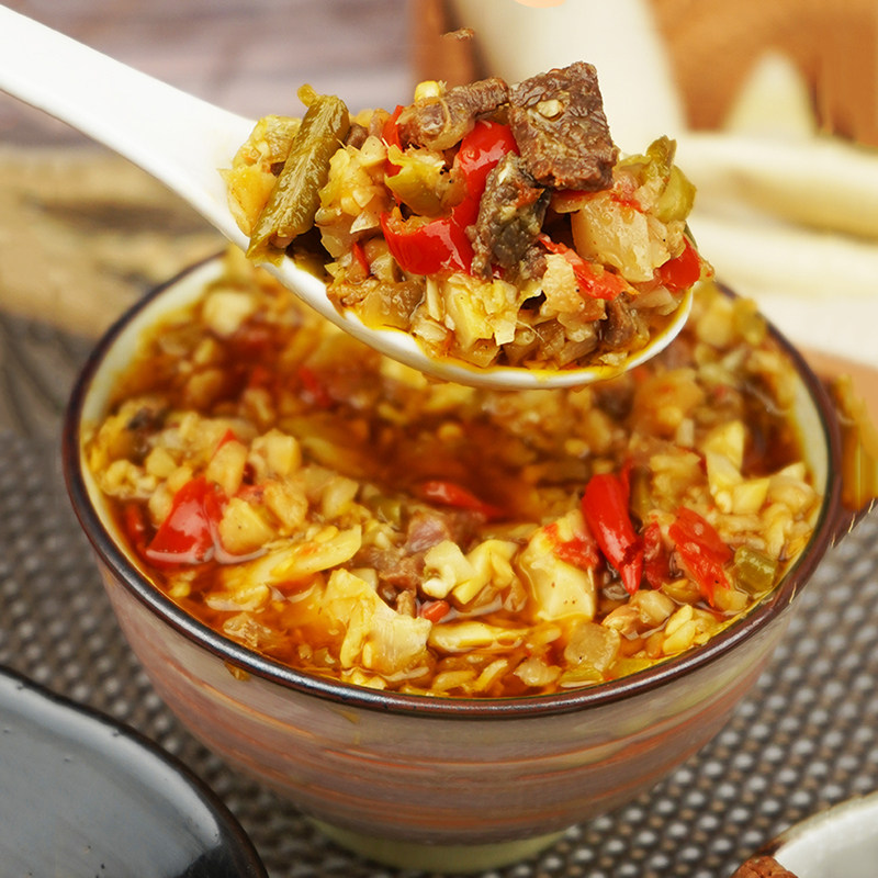 Chopped Pepper Beef Sauce 1 Bottle of Mushroom Beef Sauce 1 Bottle of Fresh Pepper Beef Sauce 1 Bottle of Black Pepper Beef Sauce 1 Bottle of Diced Bamboo Shoots Beef Sauce 1 Bottle