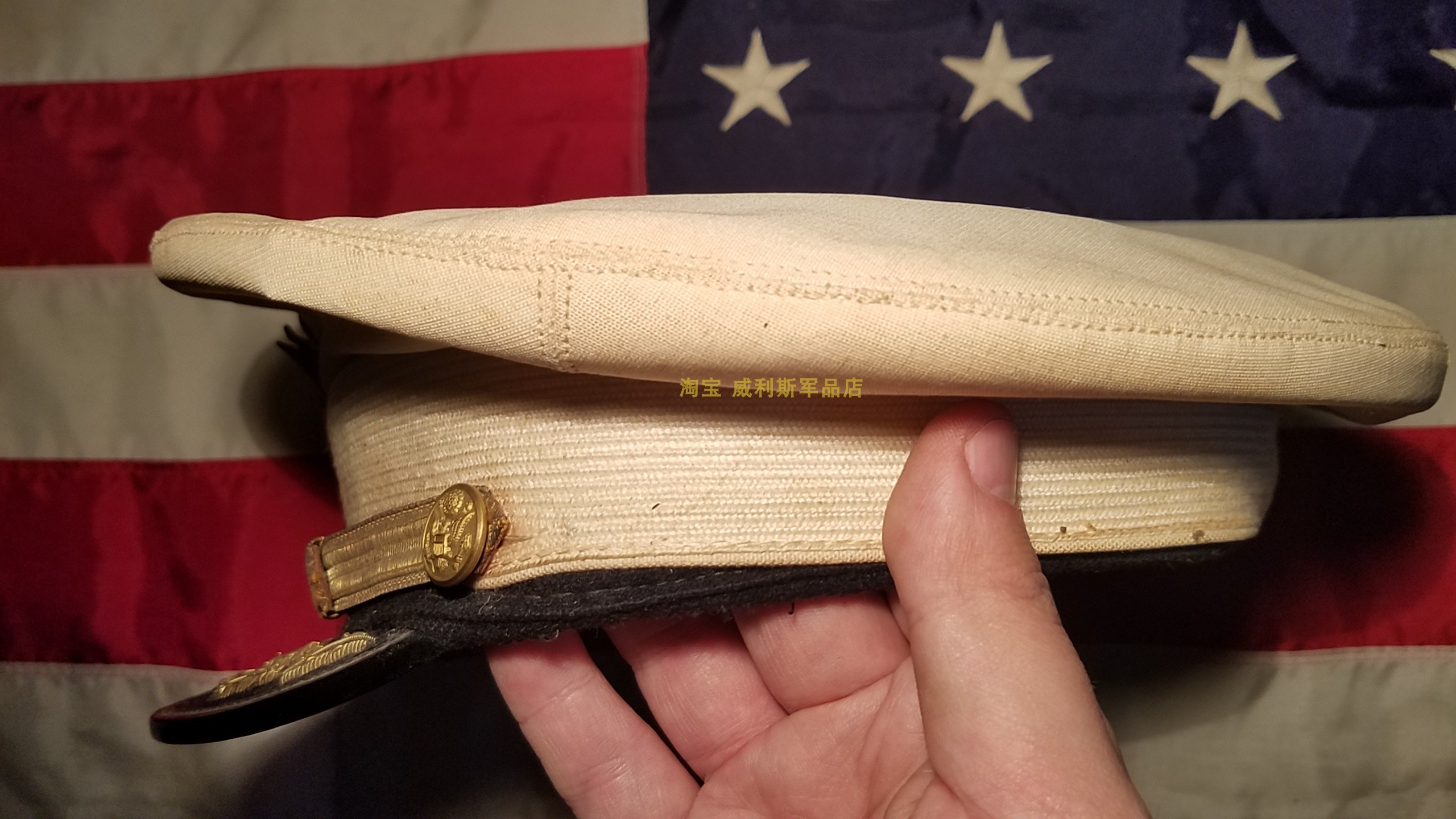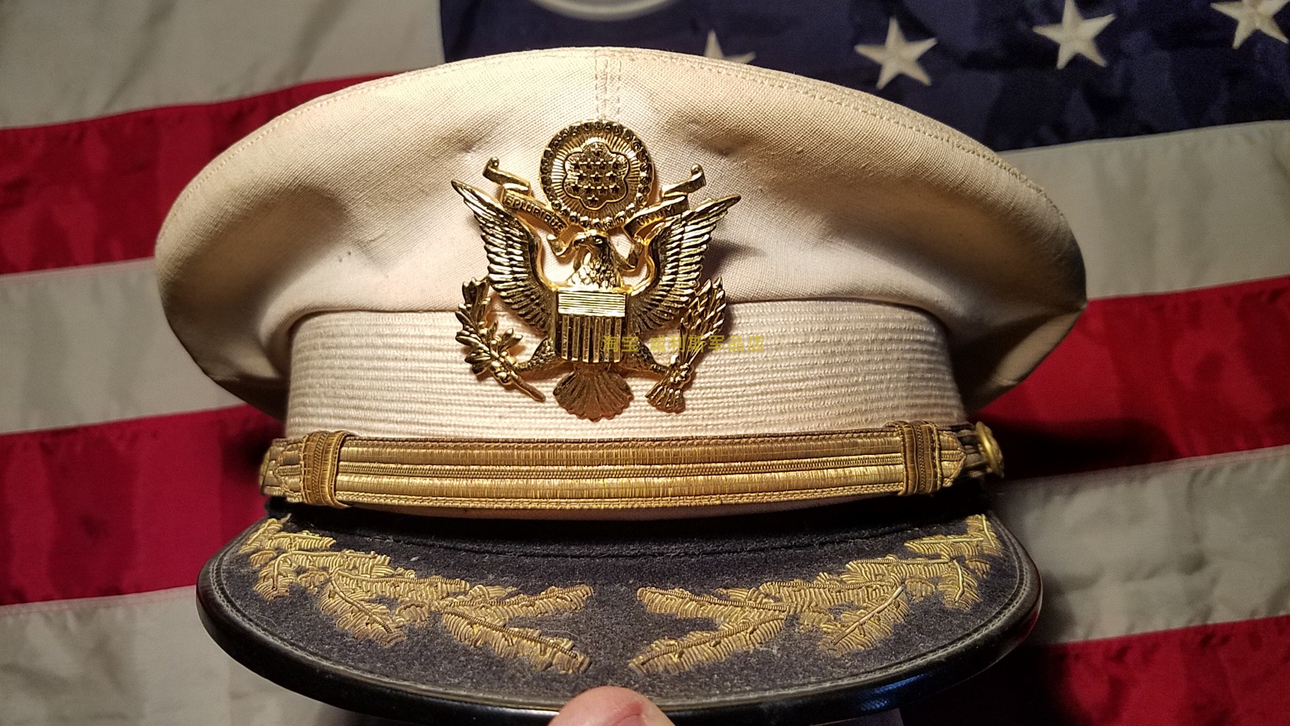 WWII US military version original Army school officer white metal wire embroidered dress big hat peak hat 7 38