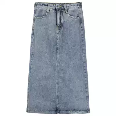 Autumn 2021 New Hong Kong style retro denim skirt high waist skirt early autumn split long A- line dress women
