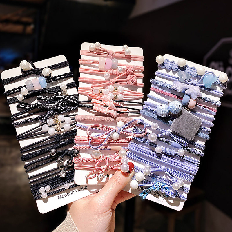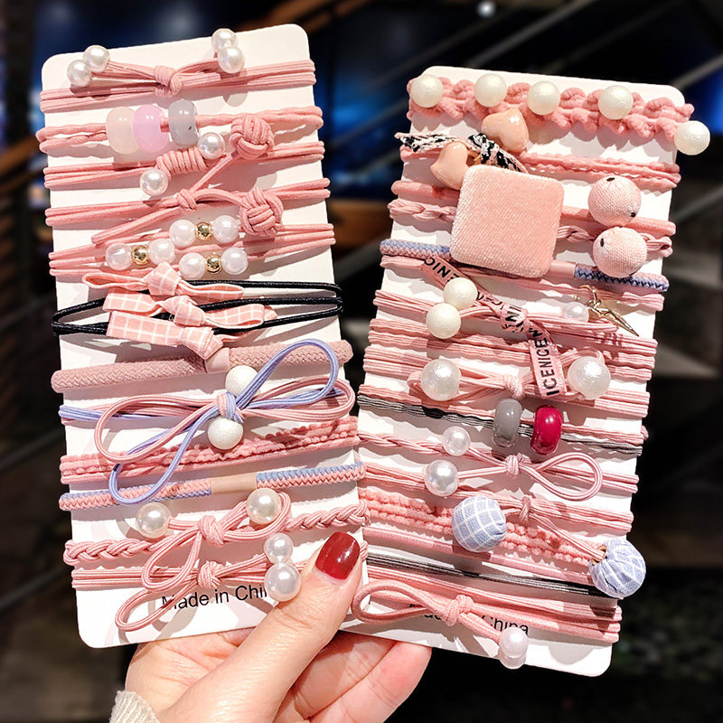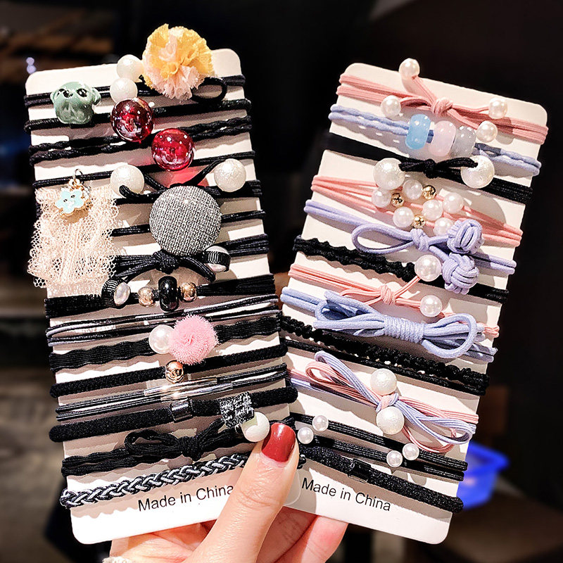 2020 new temperament brief wind grown-up head flower ornament hair ring mesh red female zezhor hair rubber band leather headgear