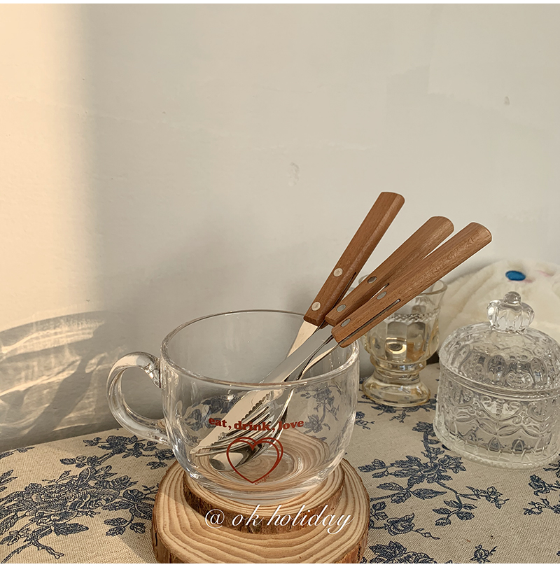OK holiday * Korean wind ins retro solid wood handle knife and fork spoon set cake knife and fork afternoon tea tableware