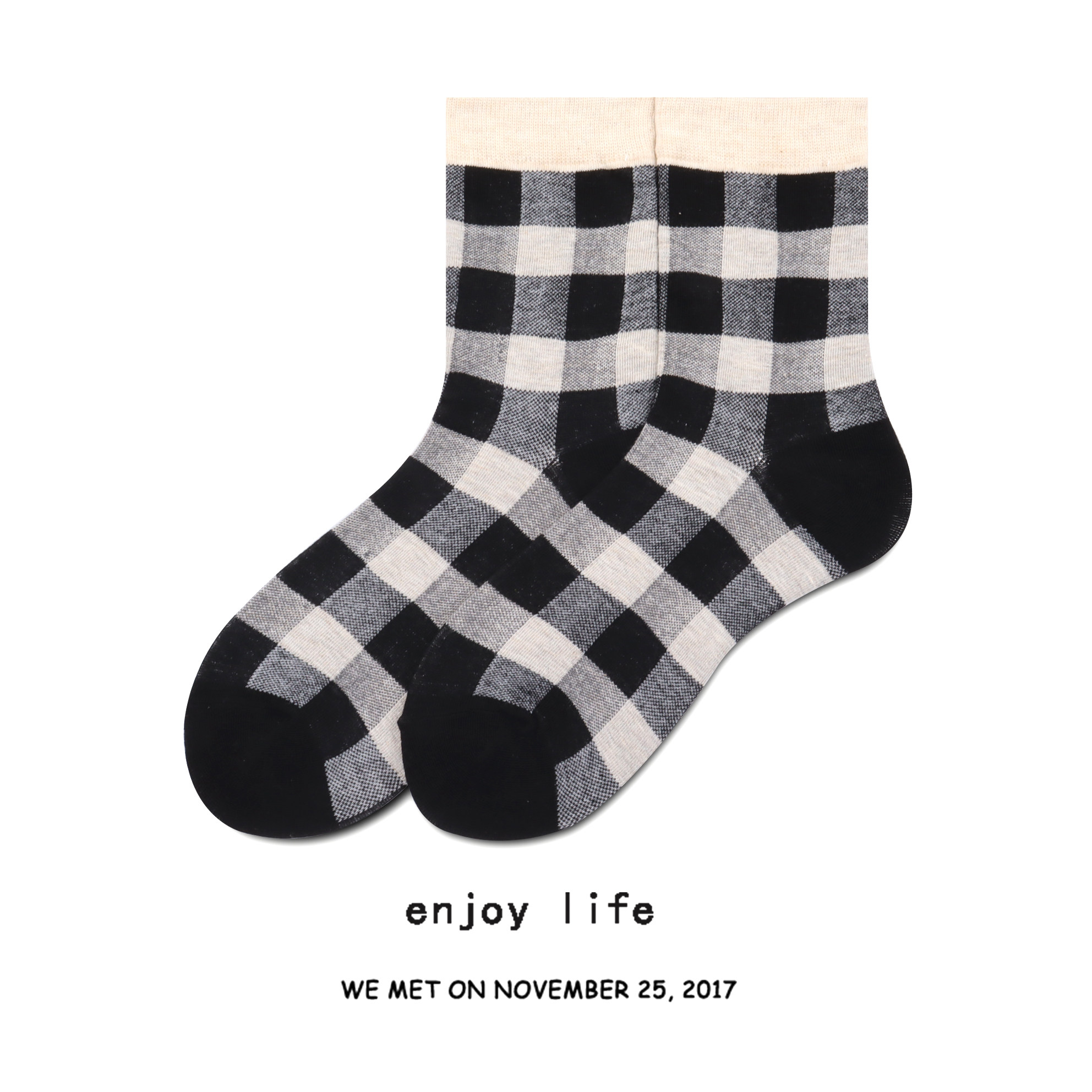 Mid-tube socks women's Japanese plaid summer thin section ins Korean version of pure cotton net red Hyun Ya style simple student socks for women