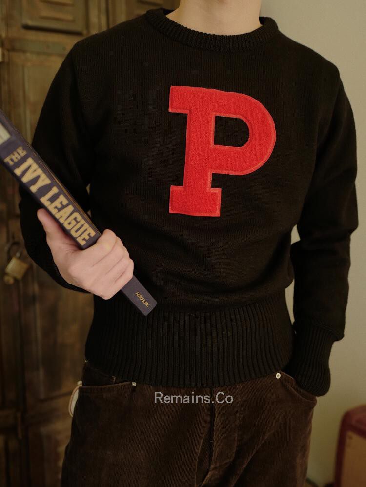 Remains IVY campus IVY letter sweater heavy imported wool retro crew neck pullover and men's and women's models