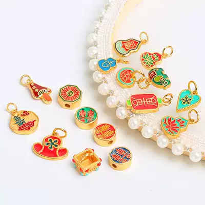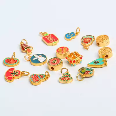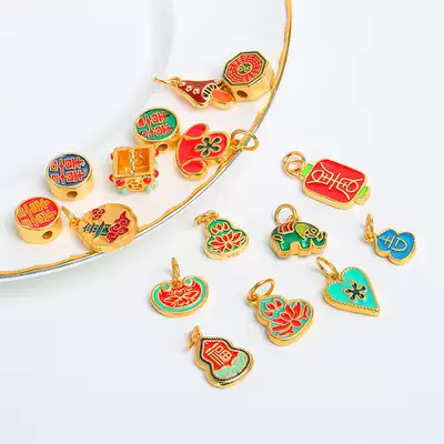 Bright Bo color preservation sand gold bead pendant accessories copper gold plated DIY red rope hand necklace drip oil pendant accessories