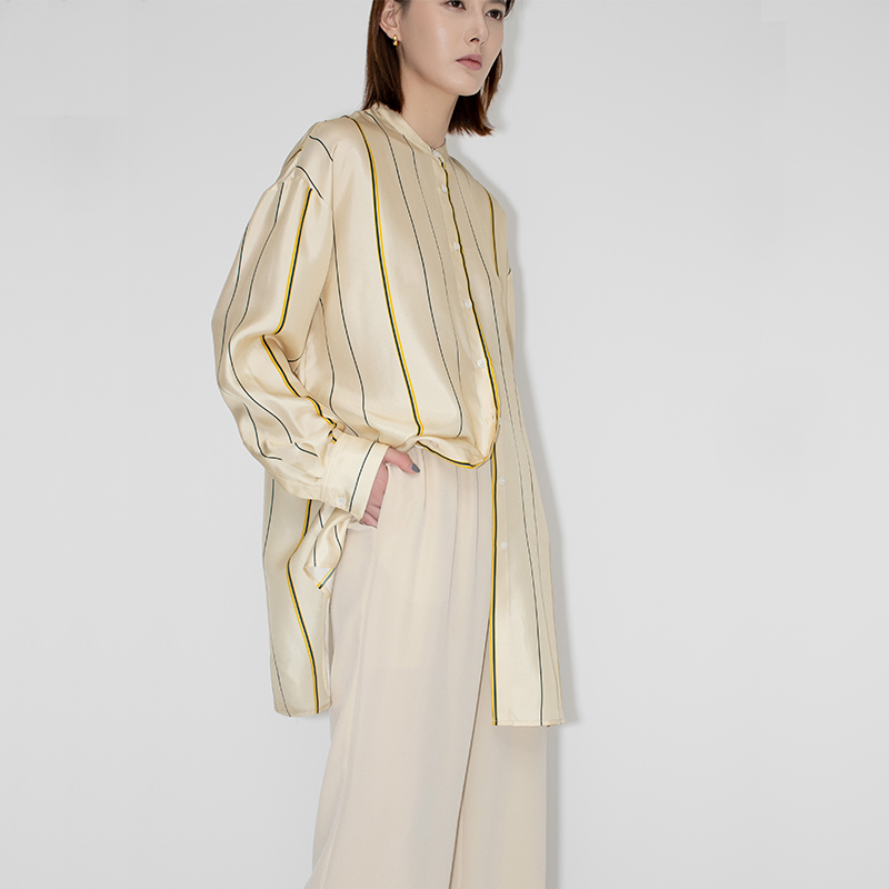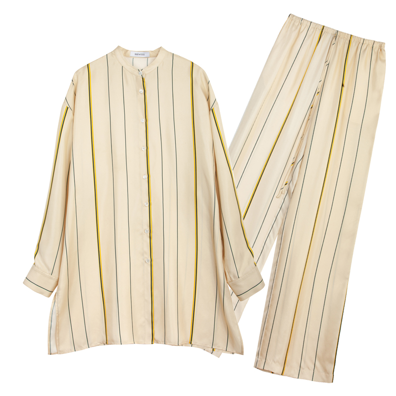 BEEWOOOD Original customised women's dress Heavy Genuine Silk Suit Mulberry Silk Shirt Broadlegged Pants Two-piece Set
