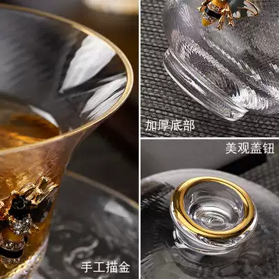 C24(1) gold inlay lid bowl-yellow bee C24(2) gold inlay cover bowl-Blue Bee C24(1) gold inlay cover bowl-yellow bee tree skin pattern inlay Cup 6 3