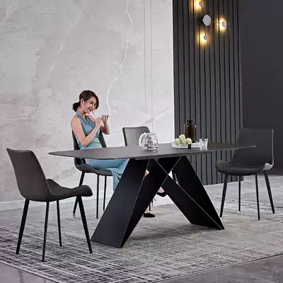 Italian minimalist rock board table small apartment rectangular simple modern designer creative light luxury dining table and chair combination