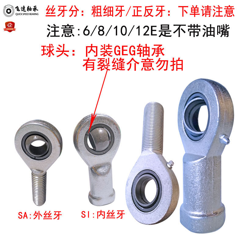 Ball head fisheye bearing connecting rod end joint bearing universal connecting rod SI6E 12 thick and thin wire teeth positive and negative 8ES
