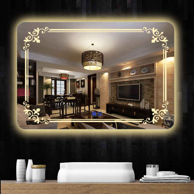 Smart bathroom mirror touch screen led bathroom mirror anti-fog dressing mirror wall hanging simple European style fancy bathroom mirror