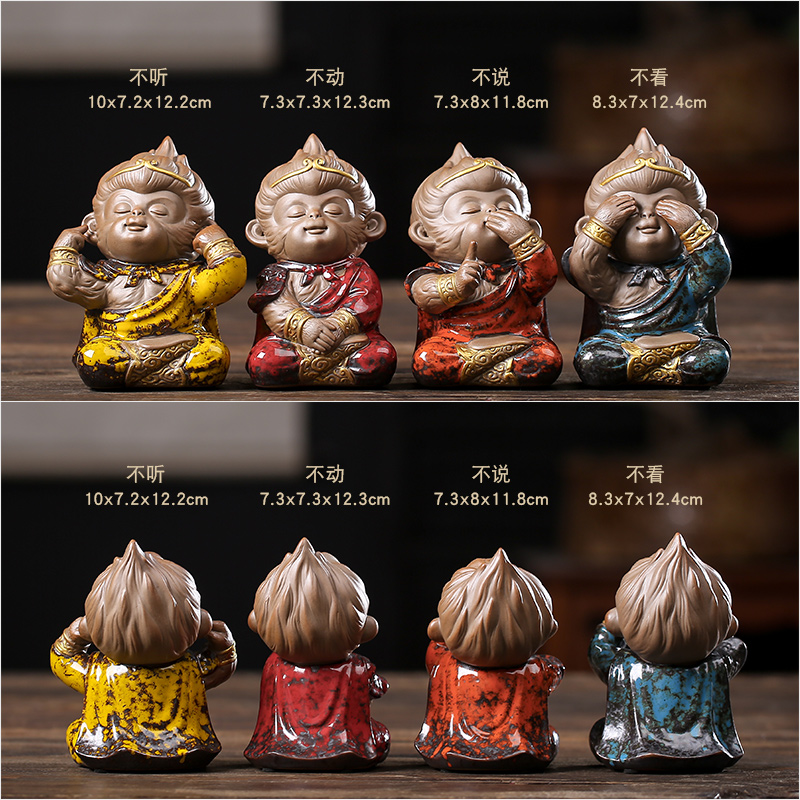 (four monkeys and one set of) Wang Shun works (four monkeys and one set of 2 layers of Bo Ancient Shu) Wang Shun works (four monkeys and one set of pear black base) Wang Shun works