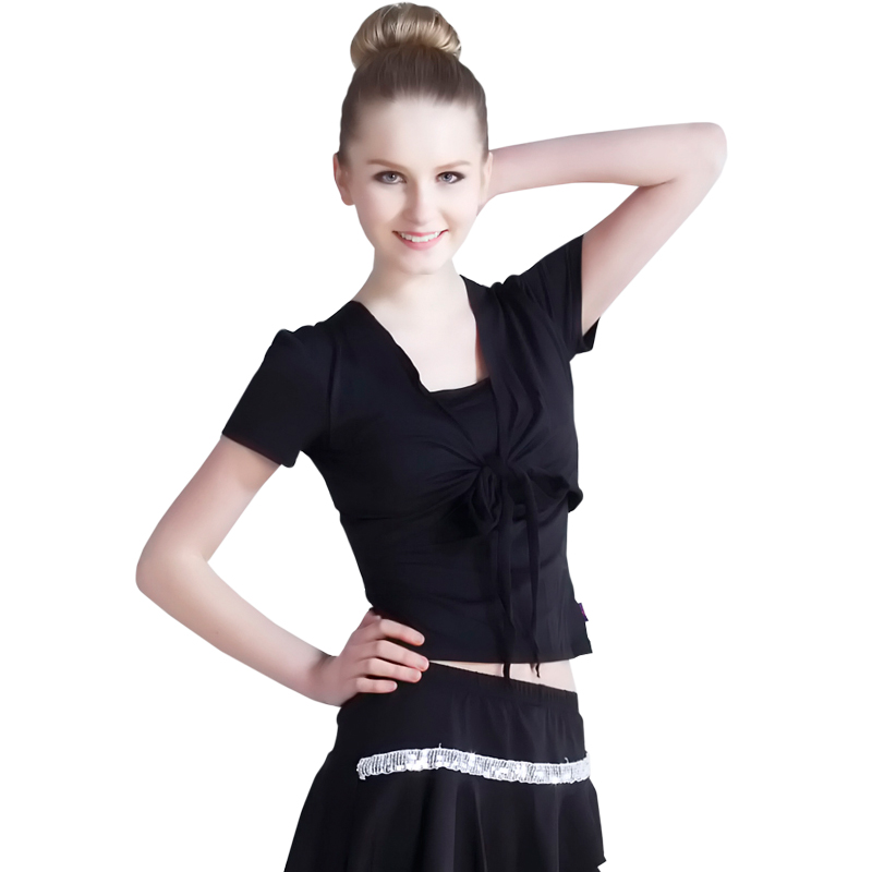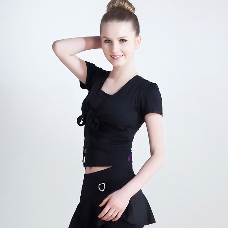 Latin Dance Practice Women's Morden Dance Floor Jersey Black Dance Suit Jacket Fake Two Strap Short Sleeve Dancing Clothes