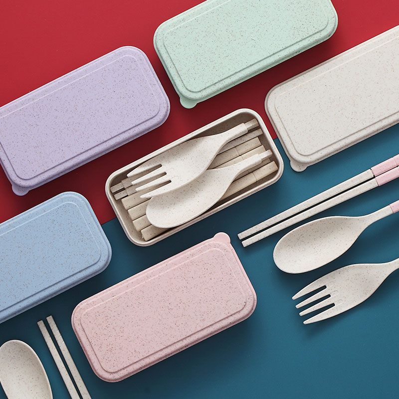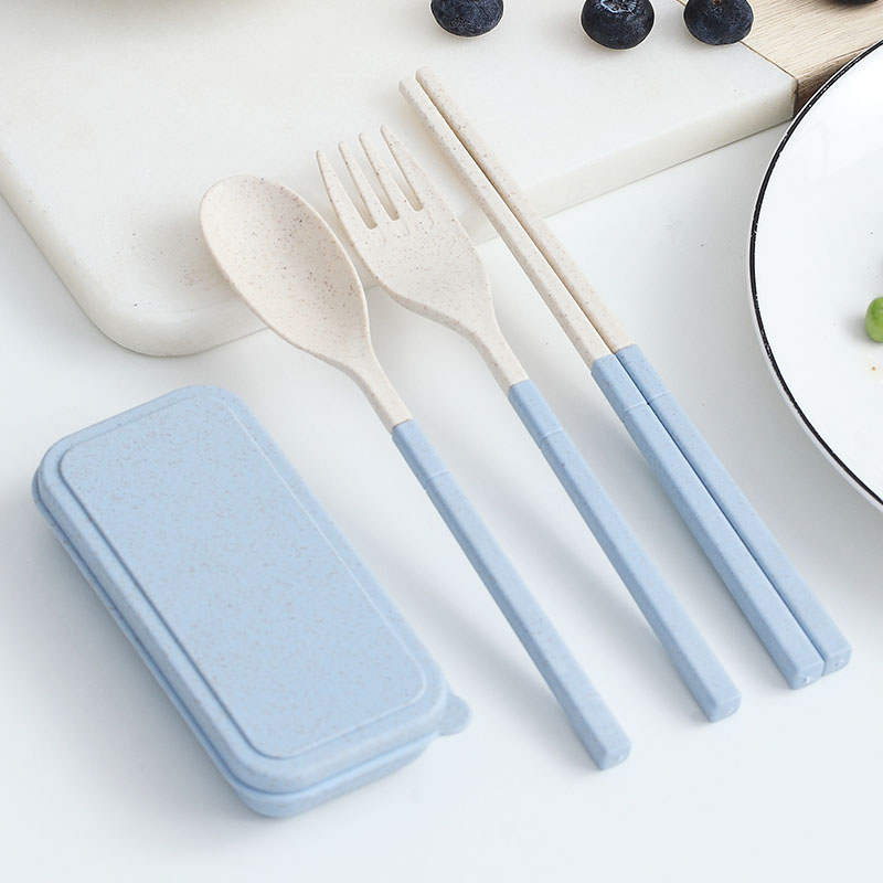 Environmentally friendly foldable tableware chopsticks students travelling out-to-carry spoon three-piece set portable