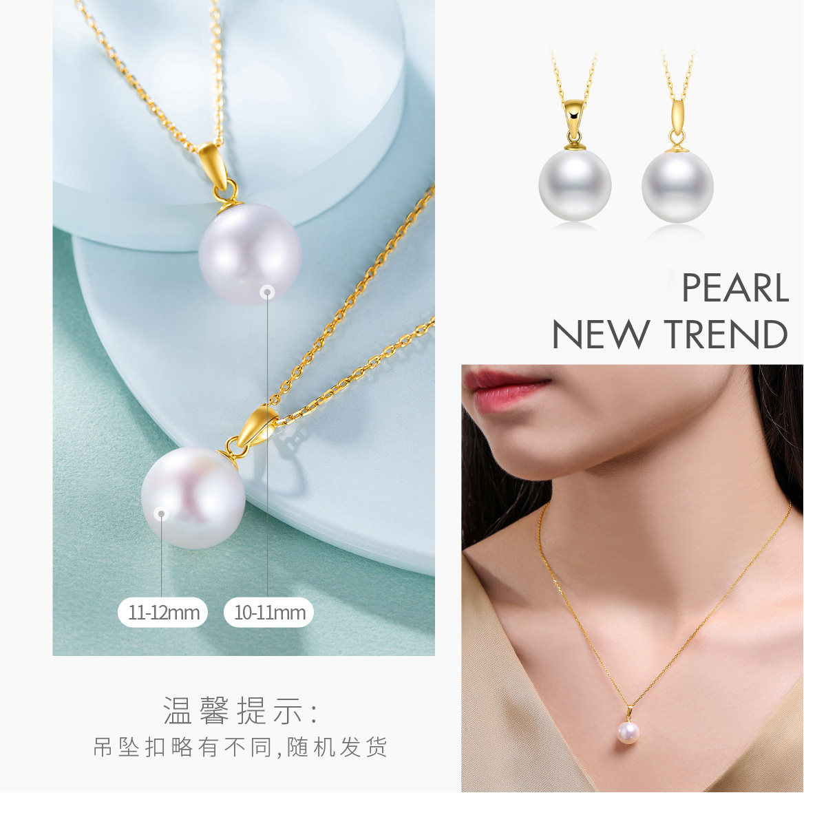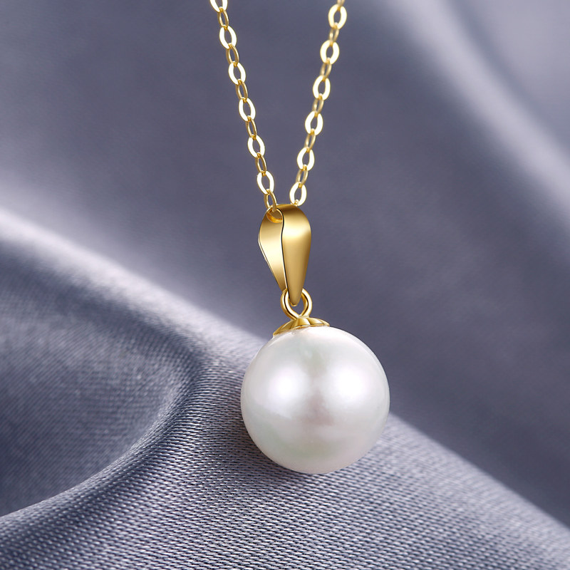 MELUXE Yellow 18K Gold Freshwater Pearl Pendant Necklace Female Single Small Light Bulb Round White Simple Clavicle Chain