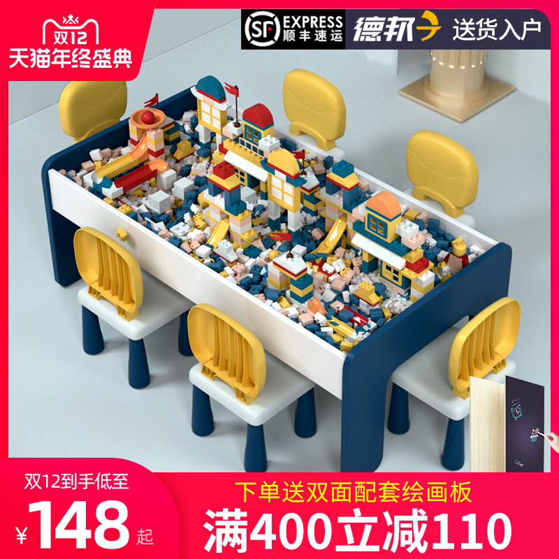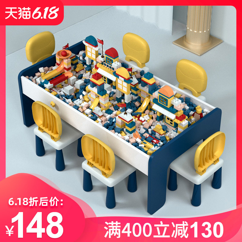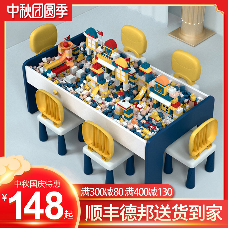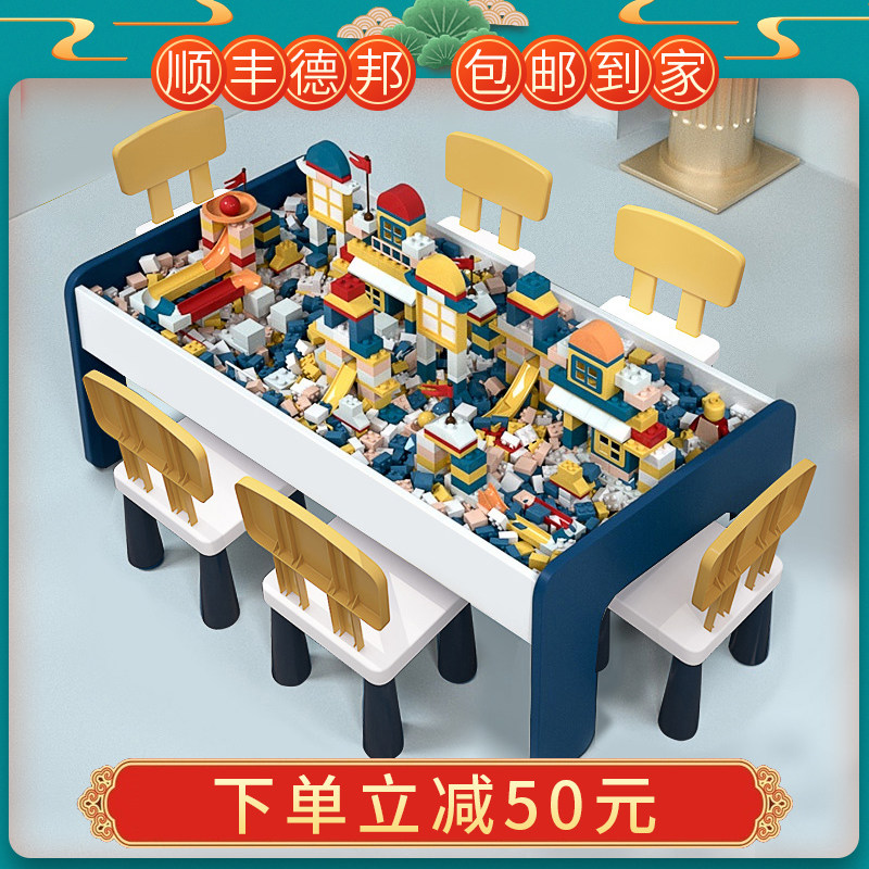 Children's puzzle building blocks tables Multi-functional boys Assembled Toys Play Sand Trays Table And Chairs Suit Large Size Solid Wood Women