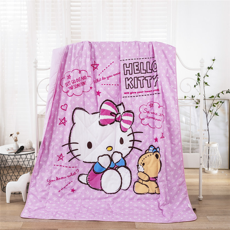 KT cat full cotton summer quilt pink girl pure cotton summer air conditioning by child thin quilt washable dormitory summer cool quilt