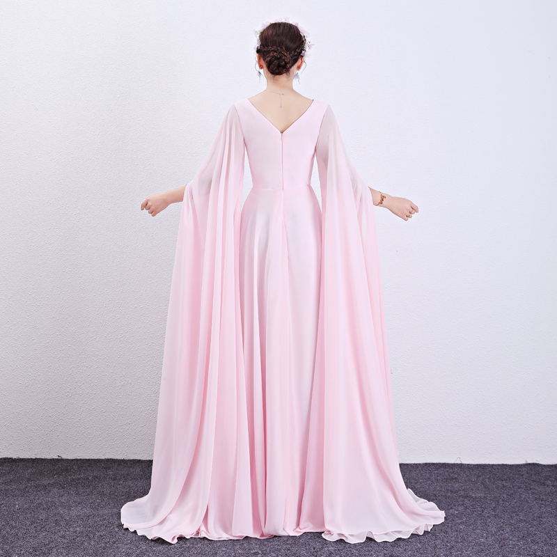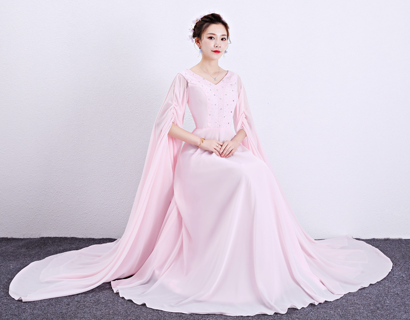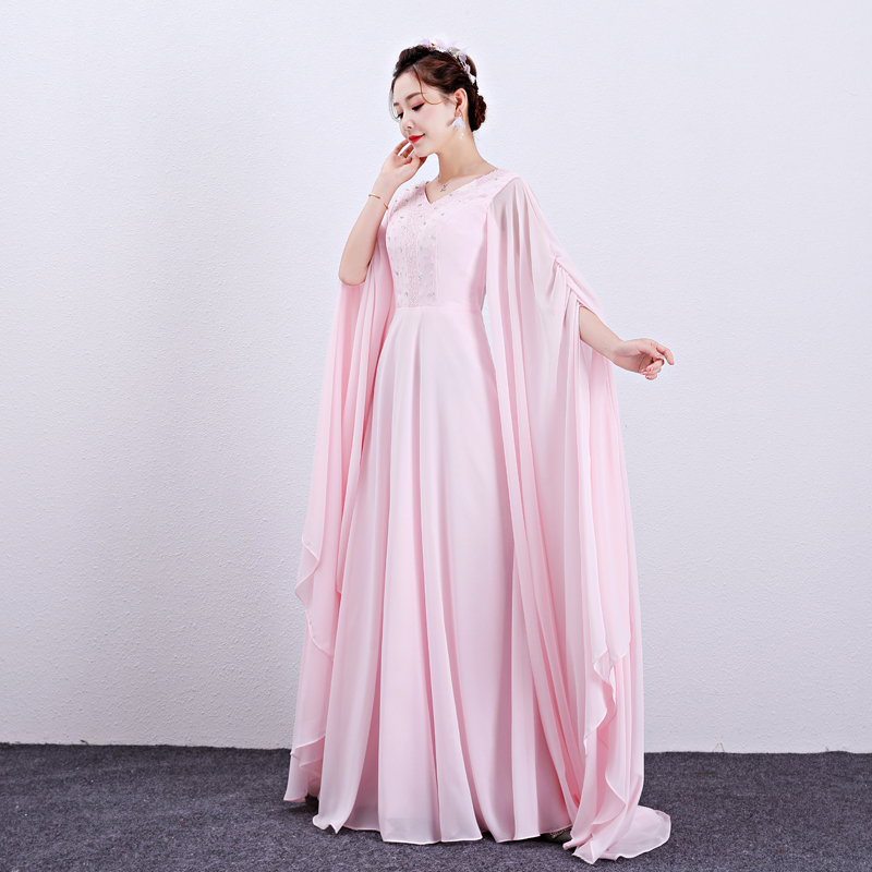 Pink dress elegant, fresh and elegant show thin sleeve bridesmaid banquet guzheng performance clothing new customizable bag